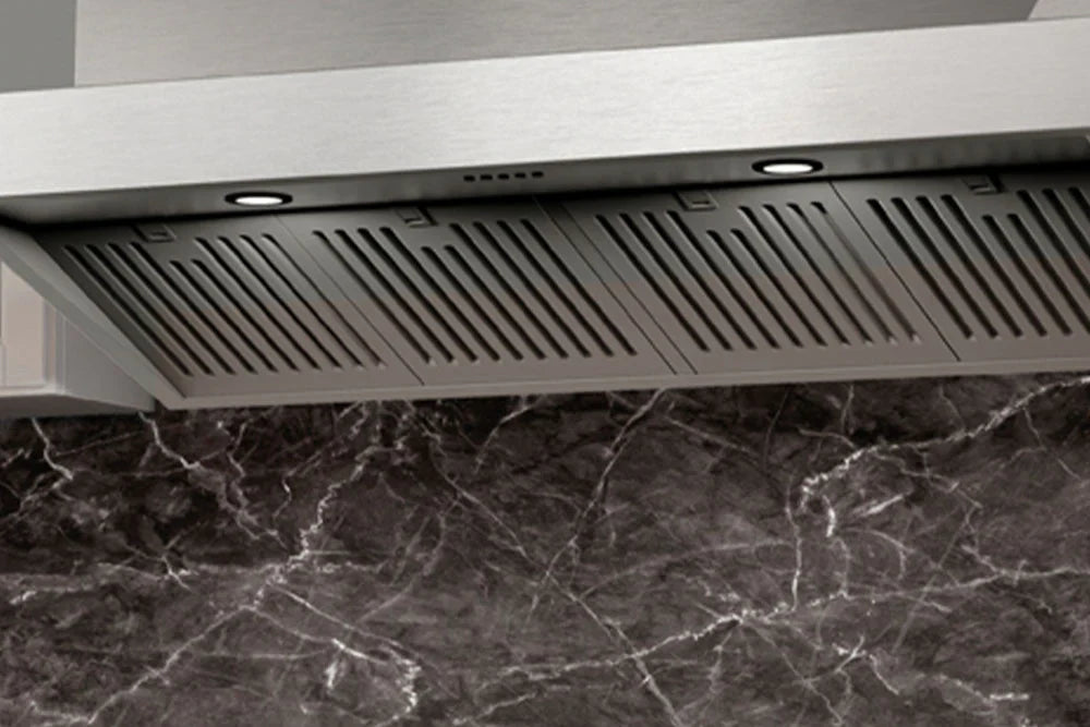 The powerful 1200 CFM suction on this 48″ range hood covers your entire cooking surface and easily removes heat and odors